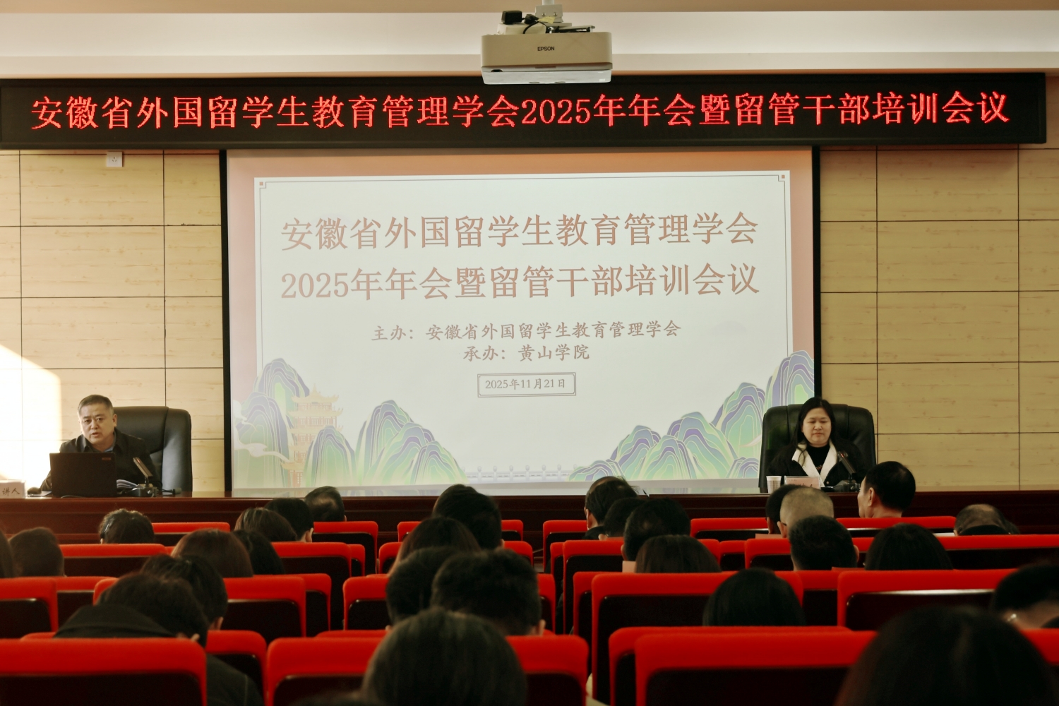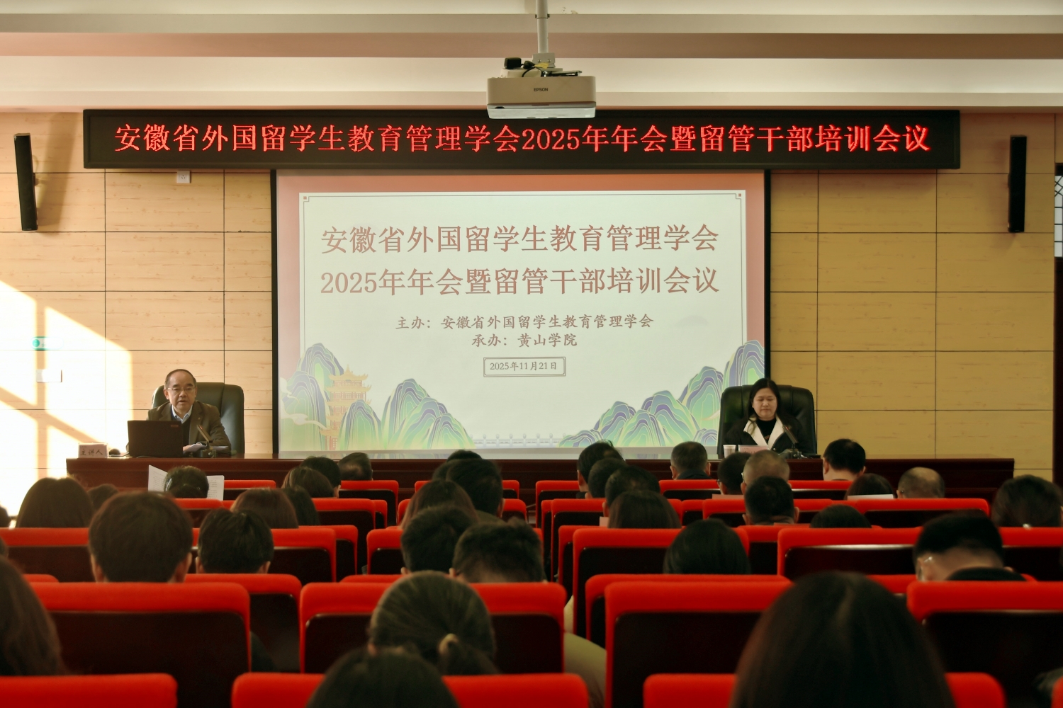 11月21日,安徽省外国留学生教育管理学会2025年年会暨留管干部培训会议在我校举行。会议特邀中国教育国际交流协会跨境教育质量保障部主任何培、南京大学海外教育学院程爱民教授等知名专家作专题报告,省教育厅外事处处长姚德勇出席会议,全省35所高校的一百余名留学生管理部门领导及留管人员参加会议。我校党委委员、副院长张小明出席开幕式并致辞。