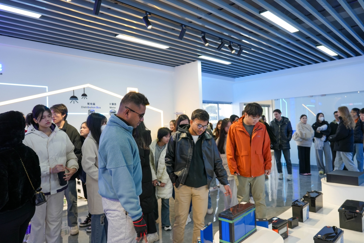 上午,留学生们首站抵达艾克瑞德工厂。公司副董事长凌张热情接待,介绍了企业三十五年来深耕新能源领域、助力全球无电少电地区能源保障的发展历程,让留学生对我国民营企业的创新力与社会责任有了深刻认知。随后,大家参观电池生产线,近距离观摩新能源产品制造流程,了解其功能特色。