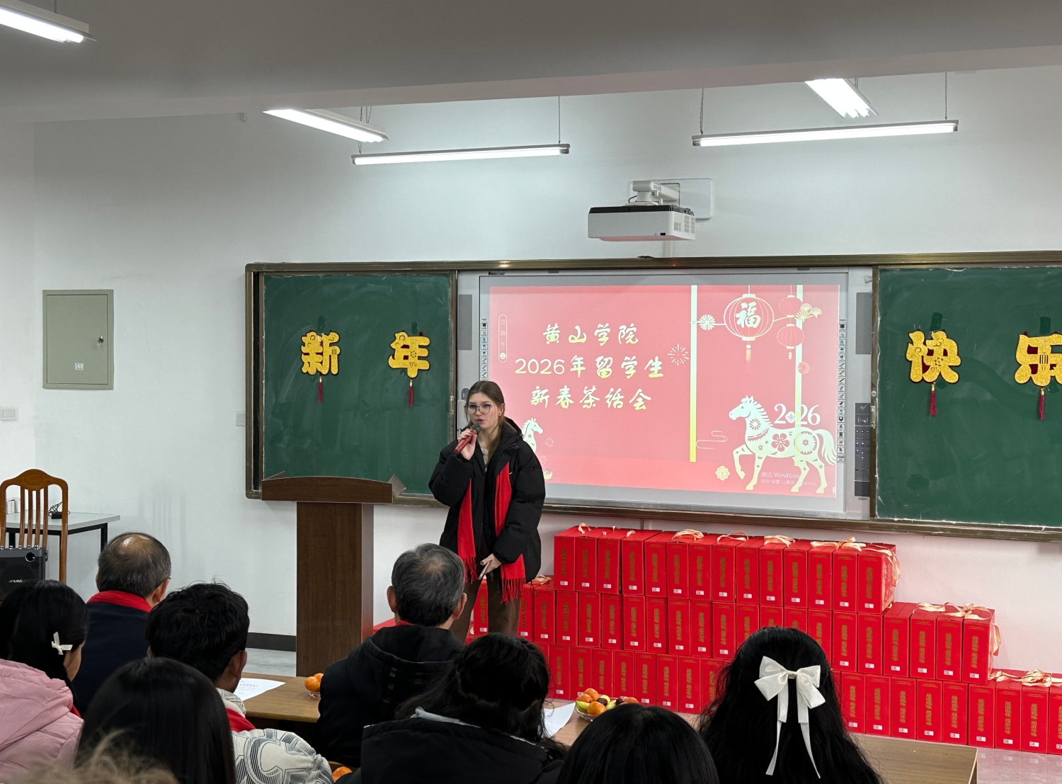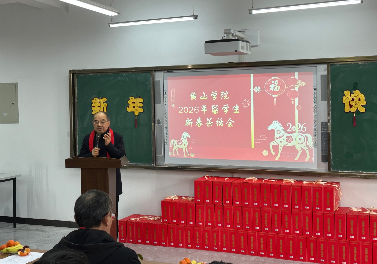 1月22日下午,在2026年新春佳节即将来临之际,我校举办来华留学生新春茶话会。校党委委员、副校长张小明出席茶话会,与来自俄罗斯、泰国、孟加拉国、乌兹别克斯坦、印度尼西亚等十几个国家的70余名留学生欢聚一堂,共迎新春。