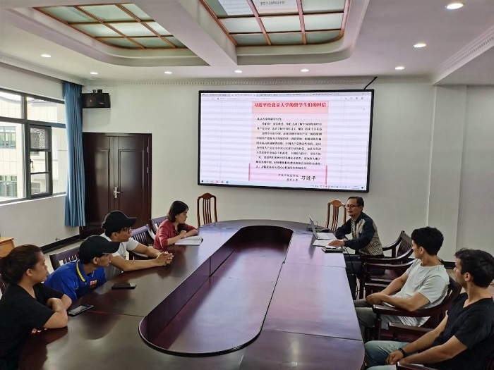 6月28日下午,组织来自巴基斯坦、美国、也门和乌兹别克斯坦等国家的在校留学生代表开展座谈会,专题学习习近平总书记给北京大学的留学生们的回信,并交流分享心得体会。