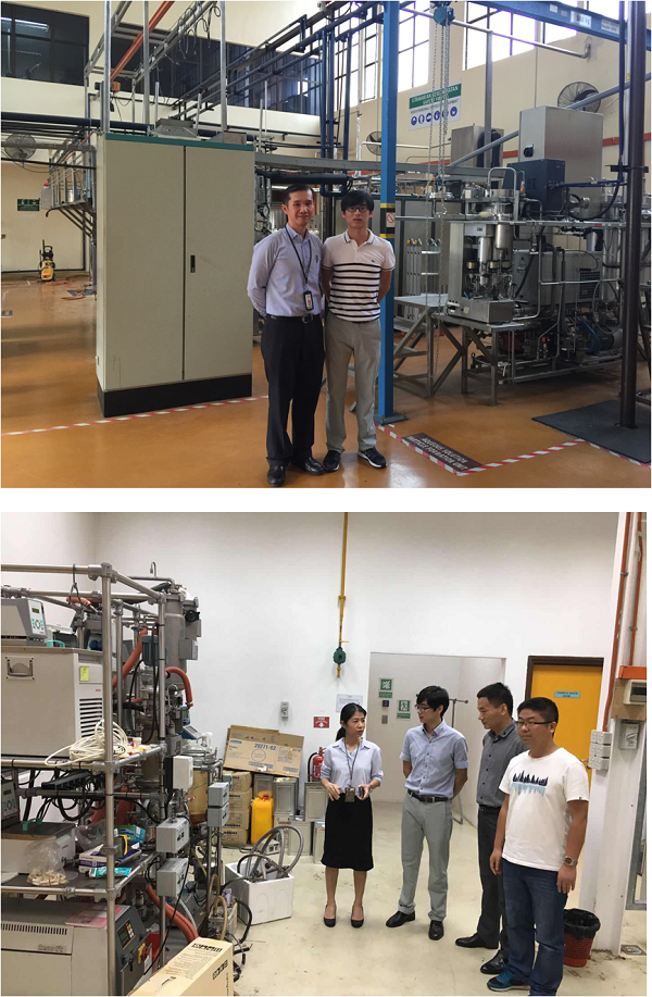 在食品科学与技术学院Tan Chin Ping教授及Chong Gun Hean副教授带领下,分别参观了食品工程中心的大型果汁饮料生产线和超临界流体萃取生产线。详细讲解了果汁饮料生产线的主要设备有水处理设备、均质机、灭菌设备、无菌灌装机、管道设备清洗消毒设施等。