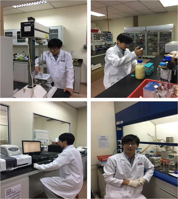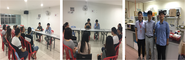 同时,自己结合实验进程,分析数据,与合作导师课题组进行交流讨论,并针对整个研修过程进行报告总结。并积极参与Tan Chin Ping教授实验团队的课余生活,比如野餐、参加羽毛球赛等,领略异国文化,努力提高英语。