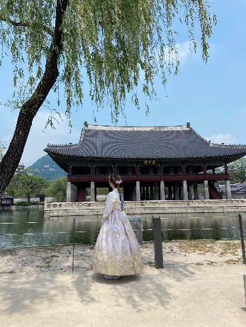 本以为疲惫的我们再也不想出去玩了,可休息几天后我们又和朋友来到光化门,体验了一次穿古服,穿上古装后的真的很漂亮,超级喜欢!但是也真的很热,只拍拍照一个小时后就换了回去。