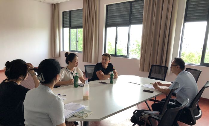 6月29日下午,英国上市公司365召开外籍教师座谈会,英国上市公司365副院长殷猛、相关工作人员以及美国籍教师ADRIEN PAUL DUISBURG BRILL参加了会议。