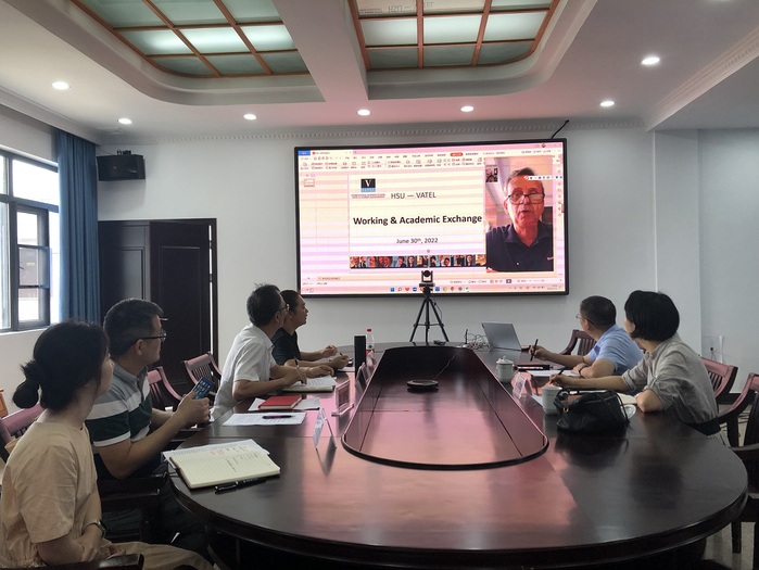 我校在会上交流了中法合作办学项目2021-2022学年开展情况、下学期教学工作安排,以及项目学费调整等情况。法国瓦岱勒全球网络事务部主任保罗介绍了瓦岱勒全球项目进展以及瓦岱勒MBA教育开展等情况。双方就本硕连读、来华留学生培养、瓦岱勒亚洲分校合作等事宜进行了深入交流,并对2022版人才培养方案、项目教师选派、课程教学改革等交换了意见。双方对进一步深化与拓展项目合作充满信心,期待不久将在硕士生联合培养、毕业生海外实习等方面的合作有突破性进展。