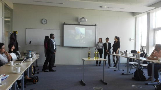 需要补充的是,有时授课教师布置问题要求学生分组完成,学生重视程度很高、积极性高,体现了协力合作的目的。例如,有次关于旅游地产品开发及营销的内容,17个学生分成5个小组,需要独立完成产品的设计、包装、成本预算与控制、定价、营销策略、出口及盈利等环节,经过数周准备后,每组通过演讲、PPT和视频等手段展示其内容。有的选择牛奶、有的则是矿泉水、有的甚至是水果红酒。小组成员各自分工明确,协力完成作品。授课教师和另外二名受邀请教师担当评委,最终对每组作品进行点评和打分,并计入该课程考核行列。该活动中有个小插曲,开发红酒的小组决定将该产品面向中国旅客甚至销往中国,并定价为每瓶35欧元,此时,班级里有同学知道我来自中国,于是现场询问我此价格是否合理,如果我作为一名消费者是否愿意购买等等问题。