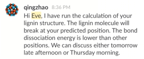 按预定计划,与麻省理工学院化学化工学院Kulik 课题组进行了课题交流,就木质素解聚机理以及采用计算化学的进行机理研究途径等课题进行研究探讨,讨论后确定了研究方案。依据提出的可能的技术路径,开展模拟和化学计算工作。学习相关软件并进行了初步应用。现已完成了预定5个模型化合物的能量计算、20个中间化合物和目标产物的化学计算,后续补充的化合物的计算还在进行中。以上计算结果将为本人在英国365集团近年从事的木质素解聚研究的机理提供验证依据和理论基础。期间参加了10次课题组组会。