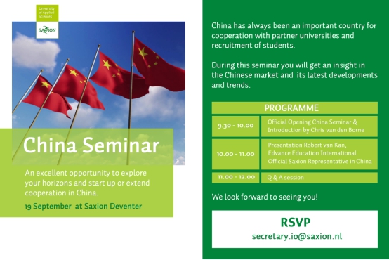 作为世界第二大经济体和人口最多的国家,欧洲各国越来越重视中国游客和吸引中国留学生。萨克逊应用科技大学也不例外。例如2017级学生quarter2的课程有一专题就是:How to cater for Chinese tourists coming to the NL (如何迎合来荷兰旅游的中国游客),分析讨论如何给中国游客提供更好的服务。2017年9月初学校特地邀请一位在北京从业20多年的留学中介代表给各院系的负责人举办(China Seminar)研讨会,分析如何更好的吸引中国留学生来萨克逊留学。