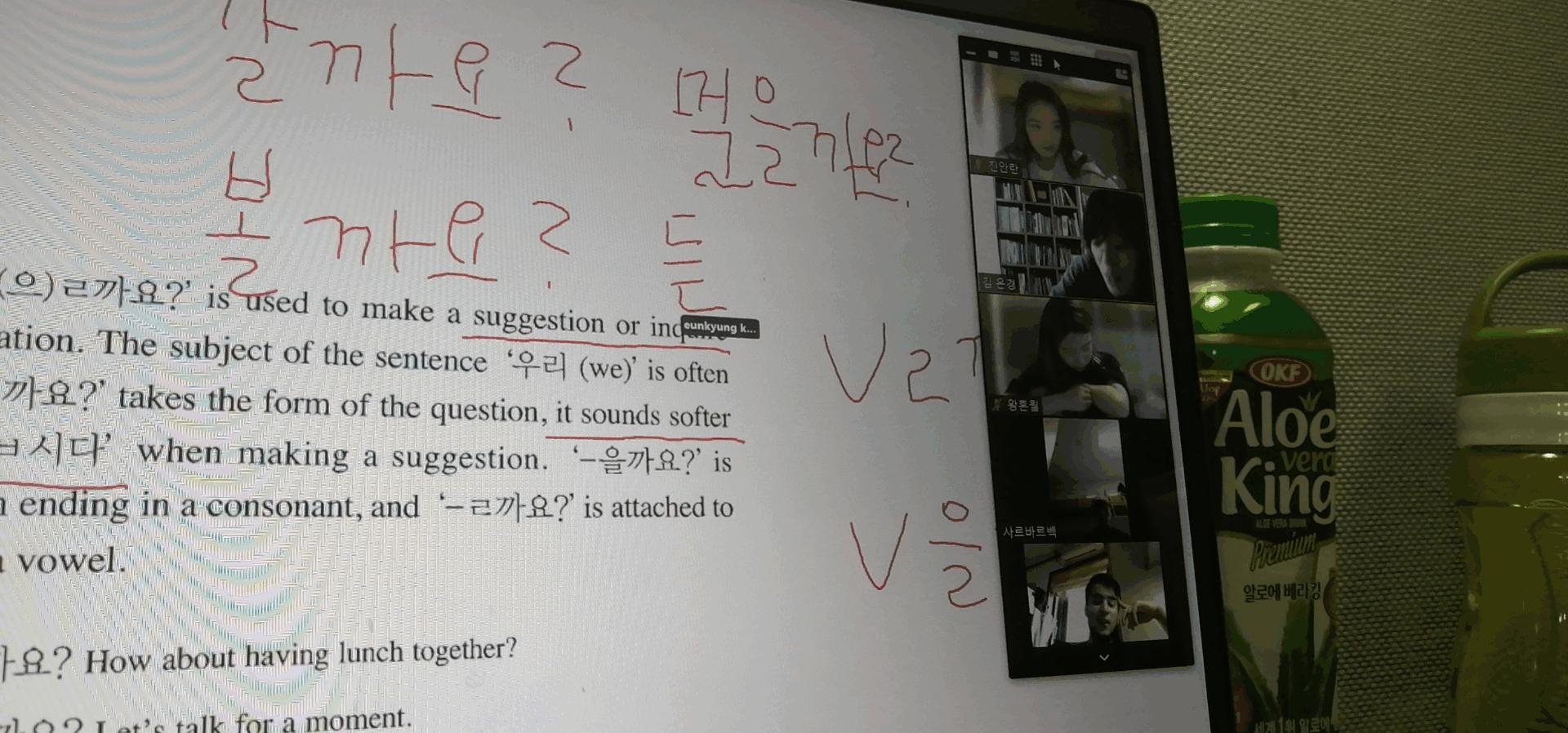 于是,我们又被隔离了十四天,原本定于线下的期中考试也改成了线上。刚接到通知的时候是非常郁闷的,因为我们线下上课其实也才刚进行两周左右,但是后来仔细想了想觉得自己安全才是最重要的。不论是在线下还是线上都可以好好学习韩语,老师也很敬业。临时改课的话,老师还要提前准备线上上课的课件,原本准备线下考试的内容也要临时修改、线上的考核也需要老师一对一进行。