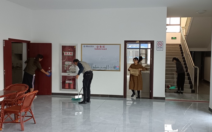 活动中,支部全体党员一起清扫留学生宿舍楼环境卫生,党员干部积极参与、分工协作,以劳动为荣、乐在其中。以实际行动营造一个干净整洁的工作生活环境,展示了党员“吃苦在前,享受在后”的精神面貌。
