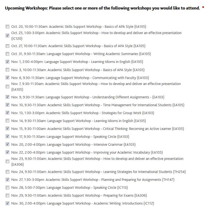 我也积极参加学校举办的各类的教学、学术、文化等活动,参加workshops的各种课程。Workshop是布鲁克大学Experience U 中的主要一个项目。每天都安排有不同的workshop,时间一般在一个小时到两个小时。每次一个主题,重点突出,学习的效果非常好。