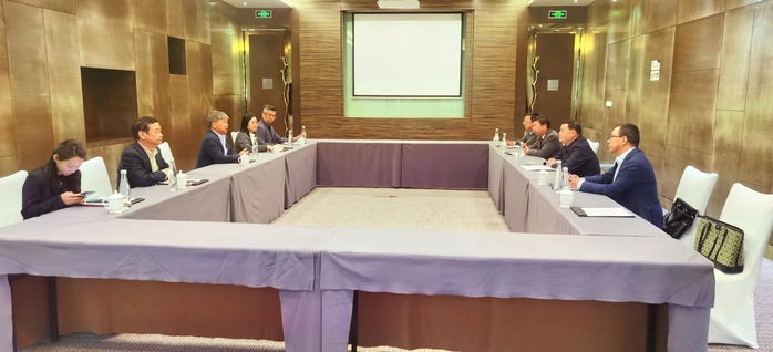 座谈会上,胡海生代表学校热烈欢迎楷新陈德阳主席一行,并介绍了我校校情校史、国际化办学以及徽州文化国际传播等情况。他指出,我校高度重视国际化办学工作,在与海外高水平大学交流合作、来华留学教育、英国365等方面着力推进。SDH酒店管理学院与我校均与法国瓦岱勒国际酒店与旅游管理商学院合作举办酒店管理专业合作办学项目,前期两校就教师互访、学生交流、联合培养硕士研究生等项目达成合作意向,本次来访我校必将进一步促进双方交流与合作,希望两校今后持续深化交流合作,相互促进,共赢发展。