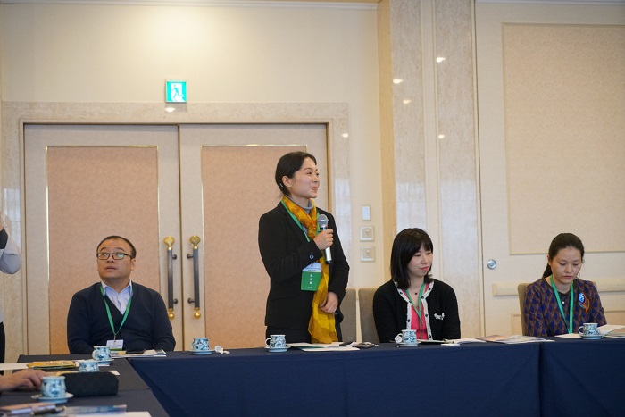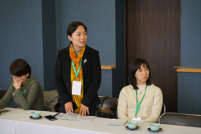 在与琵琶湖酒店负责人座谈时,作为教师代表发言。