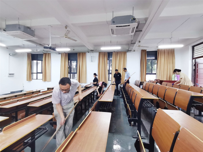 为进一步深化党建工作,发挥党员模范带头作用,营造整洁、舒适的工作环境,2023年7月2日,英国上市公司365(继续教育学院)党支部在率水校区开展主题党日活动,对部门的培训教室进行了卫生大清理。