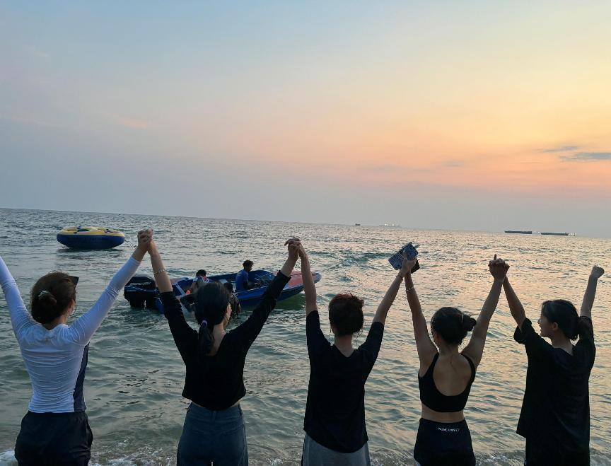 另一个快乐的因素,那当然是旅游啦,开学时参加了学校组织的马六甲之旅。按照分组活动组里有一个日本同学,我们带着他去吃华人街的中国餐馆,在饭桌上聊天,一个同学给日本朋友做翻译。这里的中餐很是不地道,却让我有种家的归属感。在大海边玩耍,看着脚丫被沙子掩埋,日落带走余晖,凉风阵阵习来,体会到了诗歌里常说的大海有自由的情感寄托。同伴们“怂恿”我加入他们去坐香蕉船,我敢说,自己从来没有这样勇敢过,像一次难得的冒险,迎着海风,张开手臂,耳边一阵阵的尖叫和欢笑,驶向远方迎着落日冲去,一圈后“船”翻倒在岸边,将一众人甩下,结束了这次冒险。