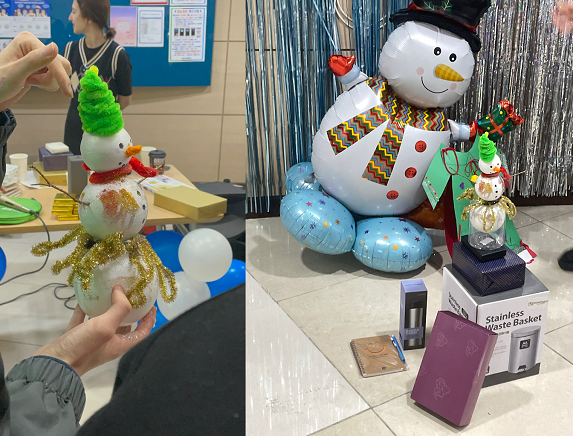 月底的时候学校有举办了“咖啡日”活动,我们一起制作圣诞主题的衣服,自己设计雪人模型,一起上台跳舞、英语发表。