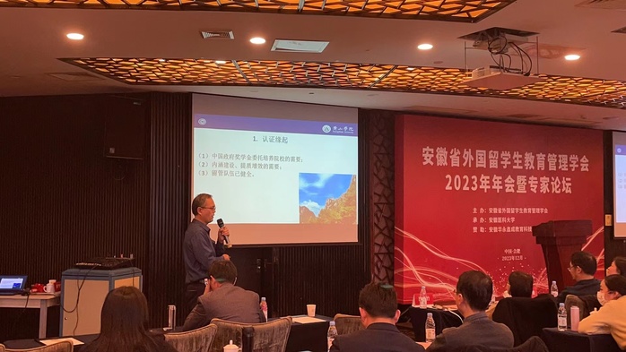 12月9日,安徽省外国留学生教育管理学会2023年学会年会暨专家论坛在合肥举办,来自全省31所高校的100余名留学生管理部门负责人及管理干部参加会议。我校英国上市公司365来华留学管理人员参加会议并作交流发言。