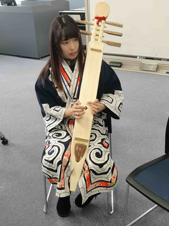 12月3日,研讨组的老师带着我们一起吃了北海道特产汤咖喱,带我们一起参加了学校举办的爱努文化展,尝试弹了下爱努文化的乐器トンコリ,看了爱努民族的舞蹈表演,粗犷、神秘、富有魅力的歌舞表演给我留下了十分深刻的印象。在此之前就曾在学校一角发现过爱奴遗址的场景复原,但这还是第一次了解这个民族,各种独特的木雕、编织物和特殊的饮食文化十分吸引我,但可惜因为场所限制,对于这个濒临灭绝的民族的了解仅仅停留在了一些文字和老师们的讲解上。