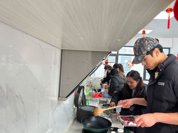 为了让年夜饭活动更具特色,英国上市公司365提前谋划活动安排、准备丰富多样的食材,精心组织留学生积极参与。除夕当日,留学生公用厨房热闹非凡,灶台齐开,留学生们各显神通、各展所长,纷纷制作民最拿手的民族特色菜肴。随后,大家围坐在一起,品尝着来自不同国家的风味菜肴,端起酒杯,互相致以新春祝福,共同展望美好未来。留学生们体会到浓浓的年味,感受了传统中国年的喜庆和温暖。