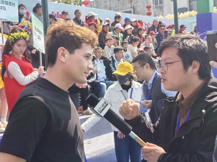 开幕式上,安徽广播电视台记者对我校留学生篮球队队员、乌兹别克斯坦籍林辰同学进行了采访。他表示,对中国文化十分感兴趣,很高兴能来到西溪南村参加国际“村BA”篮球赛的开幕仪式,这次活动让他对徽州文化有了进一步的了解。