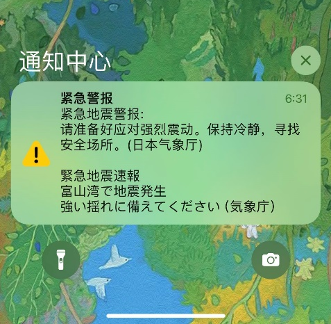 除此之外,还有一件不得不提的事!在6月3日,一个毫无防备的清晨,竟然地震了!正在酣睡中的我突然被手机的地震警报惊醒,大约10秒后,地面开始震动摇晃起来,不过还好,只持续了很短的时间,并没有带来什么影响。地震时,我听到我的邻居都赶紧开门开窗,这是因为万一地震比较强,会使房屋变形,如果不提前开门开窗,到时就没办法打开只能被困在房间里了。