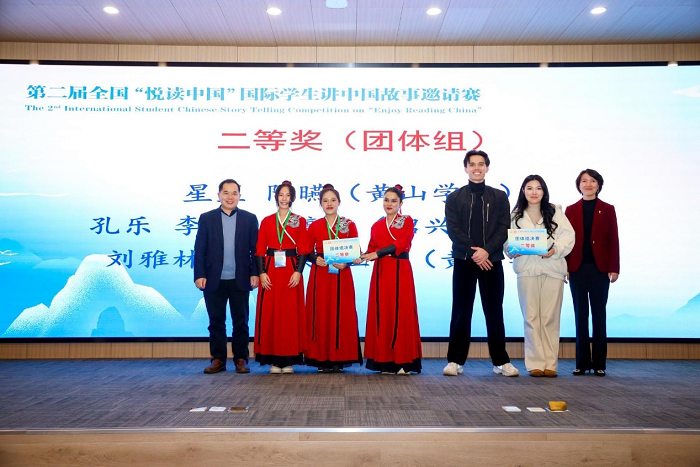 “第二届全国‘悦读中国’国际学生讲中国故事邀请赛”共有全国44所高校140件作品,经专家评审,其中来自39个国家的107位选手70件作品入围,共赴线下的复赛和决赛盛会。评委从语言表达、故事内容、呈现效果等方面对选手进行综合打分,各参赛团队按照抽签顺序依次进行演绎。我校参加复赛两组团队讲述的主题为“老外所吃”和“花木兰的故事”,以新颖的呈现形式和深刻的内涵赢得了评委的一致好评,从复赛的17支团体队伍中脱颖而出,双双晋级决赛。决赛采用现场抽签方式抽取比赛主题及出场顺序。我校两组团队分别以“中国科技”与“城市文化”为主题讲述中国故事,回答评委提问,最终均获得团体组二等奖。