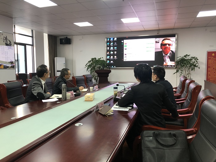 法国瓦岱勒全球网络事务部主任保罗首先介绍了近期瓦岱勒合作办学项目总体情况,对瓦岱勒项目全球评估与2021年“马可波罗”学生交流计划进行了说明。李庆玖向对方介绍了本学期开学以来我校中法合作办学项目各项工作进展情况,对法方大力支持中法班线上教学表示感谢,同时表示会继续大力推动中法合作办学项目教学改革与瓦岱勒项目评估工作。孙克奎向法方介绍了中法班2020级新生报到注册、老生实习实训以及日常教学管理等情况。双方还就培养方案修订、下学期课程安排、明年瓦岱勒全球年会以及进一步拓展与优化项目合作等事项进行了深入交流与讨论。